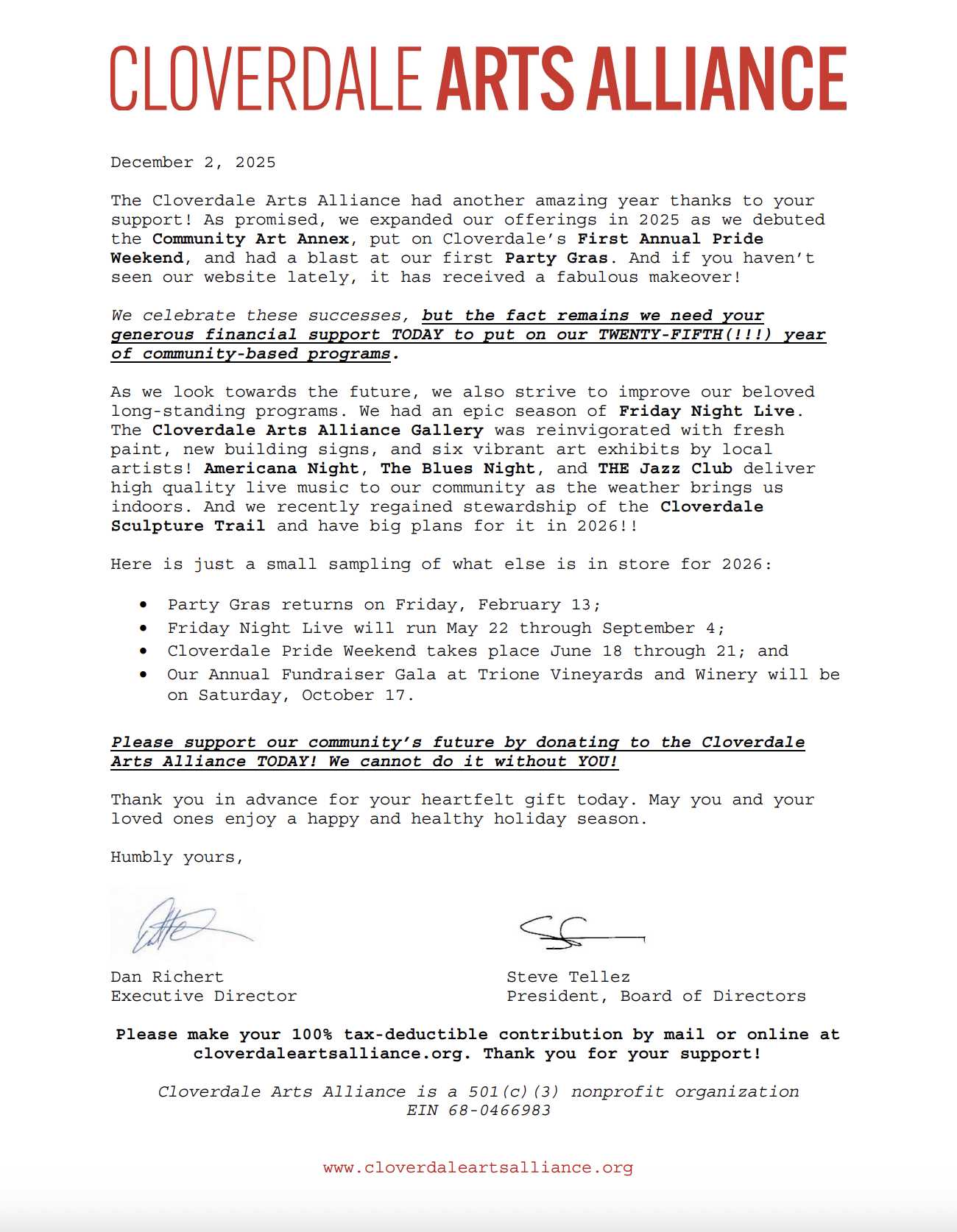 Our annual appeal letters are hitting mailboxes. Every contribution—large or small—helps us bring more music, more exhibitions, and more opportunities for local artists to our community. If you are able, we hope you’ll support the work ahead.